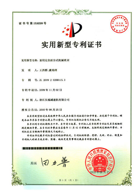 ZL 2009 2 0268115.3 釜用完全剖分式機械密封