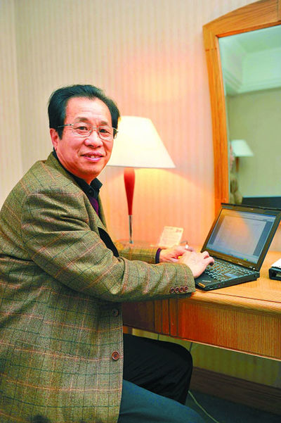 上圖為虞培清董事長(zhǎng)正在客房里發(fā)微博 《浙江日?qǐng)?bào)》記者楊曉軒 攝