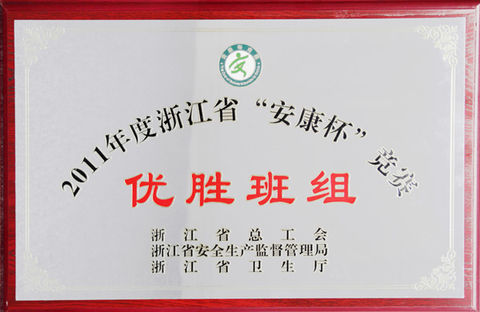 2011年度全國“安康杯”競賽優勝班組 榮譽證書