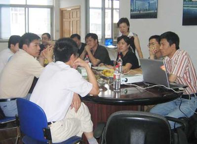 研究所所長周國忠博士正在介紹企業現有的科研技術情況