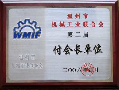 浙江長城減速機被評為“溫州市機械工業聯合會第二屆付會長單位”