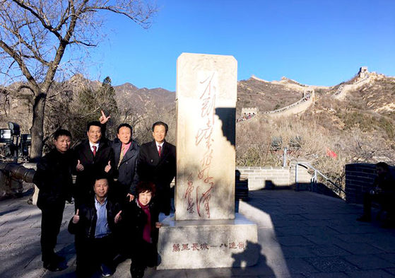 在掛牌儀式前,董事長虞培清率領公司主要股東登上了巍峨壯麗的八達嶺長城,在毛主席親筆題寫的"不到長城非好漢"碑前留影,紀念這個里程碑的日子,應和了大家對"長城攪拌"發展的堅定信念!