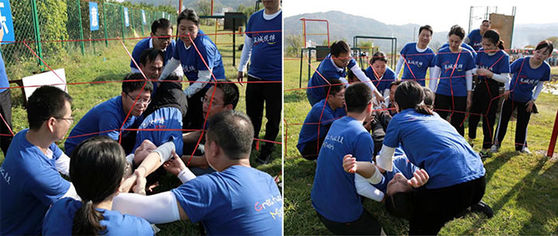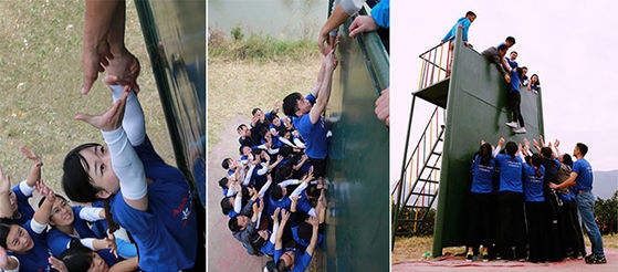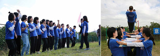 在秋高氣爽的日子里,會議期間公司組織總部銷售人員與各辦經理前往雁蕩山拓展基地活動,項目有信任背摔,穿越電網,畢業墻。