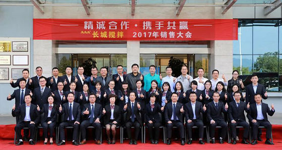 "精誠合作 ● 攜手共贏"長城攪拌2017年銷售大會在公司總部順利召開,14名各辦事處銷售經理、7名高管及銷售管理人員、營銷部以及技術部職員共計50人參加了此次大會。公司領導虞培清、虞淑瑤到會,并代表公司向各辦事處經理以及全體銷售人員致以最崇高的敬意和衷心的感謝。