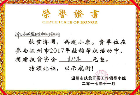 溫州市2017年掛鉤幫扶,我司捐贈100000元