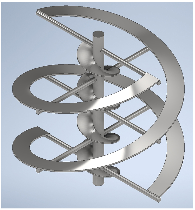 2.有效分割:螺帶外圍均勻分布的橫檔在旋轉過程中對物料進行有效的分割,這樣可以增加物料之間的接觸面積,促進混合均勻。