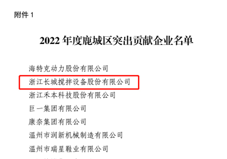 長城攪拌接連榮獲“突出貢獻”“對外貿易信用企業”稱號