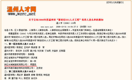 溫州市“551”人才評選活動日前結束,我公司周國忠博士榮獲溫州市“551”第一層次人才稱號。此榮譽稱號全市企業僅有兩個名額,周博士能獲此殊榮,不僅是對其個人工作能力的肯定,...