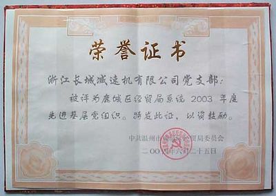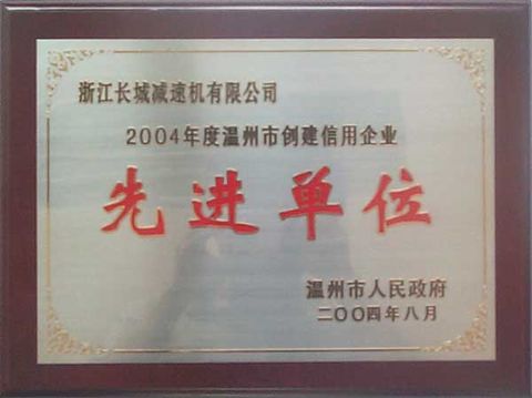 2004 年 8 月,溫州市人民政府命名我公司等97家企業為2004年度溫州市創建信用企業先進單位,并予以通報表彰。