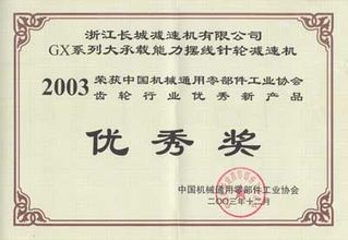 GX系列大承載能力擺線針輪減速機獲中國機械通用零部件工業協會優秀獎