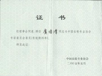 鑒于我公司總經(jīng)理虞培清高工在齒輪工程領(lǐng)域所做出的貢獻(xiàn),中國齒輪專業(yè)協(xié)會理事會特吸收其為“中國齒輪專業(yè)協(xié)會專家委員會委員”。