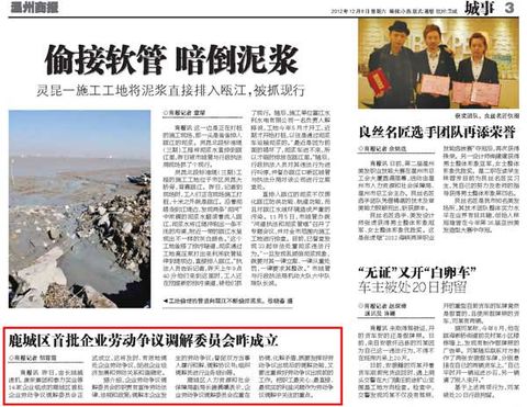 2012年12月7日(星期五)上午,由我公司在內(nèi)的14家企業(yè)組成的鹿城區(qū)首批企業(yè)勞動(dòng)爭議調(diào)解委員會(huì)正式成立,區(qū)協(xié)調(diào)勞動(dòng)關(guān)系三方機(jī)制2012年第2次會(huì)議暨企業(yè)勞動(dòng)爭議調(diào)解委員會(huì)授牌儀式在我公司二樓會(huì)...