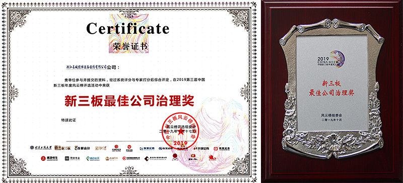我司榮獲2019年中國新三板年度風云榜“新三板最佳公司治理獎”